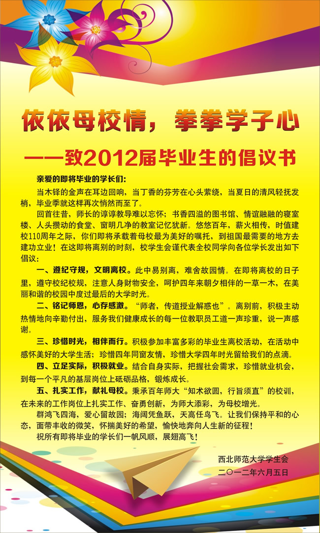 依依母校情,拳拳学子心——致2012届毕业生的倡议书