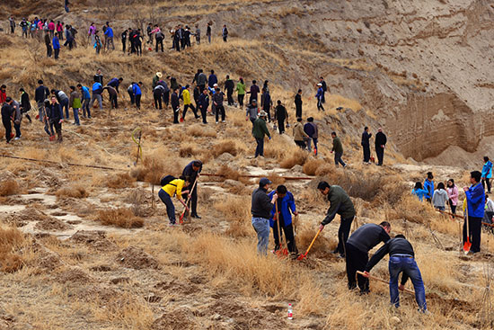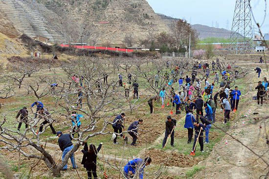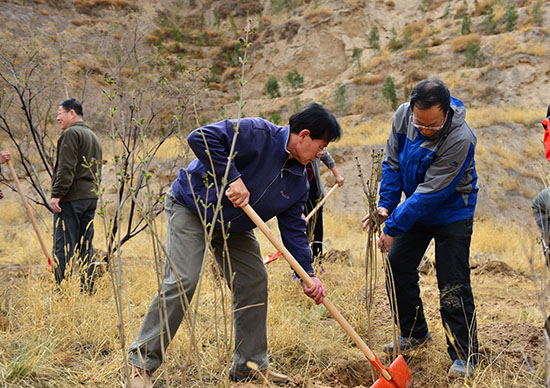 植树现场一派热火朝天的劳动景象,全体机关干部热情高涨,干劲十足,纷纷挥锹铲土、扶苗填坑、平土浇水。整整一个上午,在大家的共同努力下,500余株丁香树苗生机勃勃地挺立在北山二台地上,含苞欲放的桃树林更是在翻整后的山地上展现出盎然春意。植树期间,学校领导现场讨论研究新校区北山生态景观公园规划设计方案。