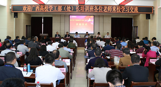 5月22日上午,2017年广西高校学工部(处)长培训班开班仪式在马克思主义学院举行。广西高校工委副书记满昌学、宣传部部长李美清和beat365副校长、教育部beat365官方网站辅导员培训和研修基地主任张生勇及甘肃省教育厅思政处处长牛辉峰、马克思主义学院负责人出席开班仪式。来自广西67所高校以及我省部分高校学工部(处)长共110余人参加开班仪式。马克思主义学院院长王宗礼教授主持开班仪式。