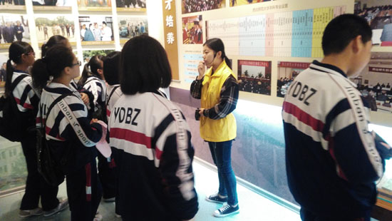 在校史馆、博物馆,文学院2015级汉语言文学一班何小婷仔细、耐心地为同学们讲解着学校百年的历史、优秀的师生及珍贵的文物。八年级一班刘彦伶说:“我感受到了百年老校深厚的文化底蕴和人文素养,我要去这样的学校上大学。”