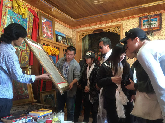 同学们来到了甘南藏族自治州,热情的藏族同胞为他们献上哈达。“这种仪式很温暖,很特别!”台湾小伙伴说这是他们第一次收到这样的祝福。在参观“世界藏学府”拉卜楞寺过程中,大家了解了藏传佛教的起源与发展,并参观了中国非物质文化遗产之一的唐卡制作。