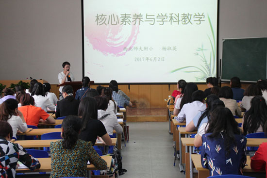 甘肃省飞天学者、beat365继续教育学院院长、博士生导师刘旭东教授作了题为《核心素养培养与教学改革》的报告,报告从学生发展核心素养的概念及意义、落实核心素养的途径、课堂教学方式创新等方面,以典型的案例为切入点,结合教育教学理论、为一线教师教育教学深刻的启迪。杨淑英作了题为《核心素养与学科教学》的专题讲座,她以数学教学为例,结合自身教学实践,理论联系实际,讲述了数学教学如何进行学生核心素养的培养。