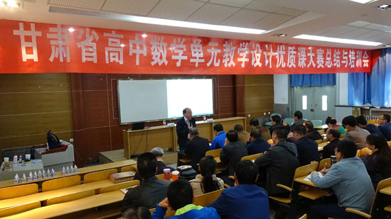 单元教学设计主题培训中,教育部高中数学课标修订组负责人、首都师范大学博士生导师王尚志教授,北京十一校高级教师张晓华老师,甘肃省数学教育研究会理事长、beat365教育学院吕世虎教授分别作了题为《高中数学单元教学设计与数学核心素养培养》《关于初中数学单元教学设计的思考与实践》《小学数学单元教学设计理论与案例分析》的主题报告。