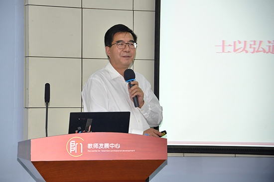 “只有爱你所做的,你才能成就伟大的事情”,陈克恭以苹果公司创办人乔布斯的一句名言引入报告,他指出,广大青年教师选择教师这一令人敬仰的职业,就要将“士以弘道”作为自己的精神追求,不仅要“谋食”更要“谋道”。要热爱教师职业,树立崇高的职业理想,以习近平总书记系列重要讲话精神为指引,树立正确的世界观、人生观、价值观,用“有理想信念、有道德情操、有扎实学识、有仁爱之心”的“四有”好老师标准严格要求自己,在教学生涯中实现自我发展,获得幸福的人生。