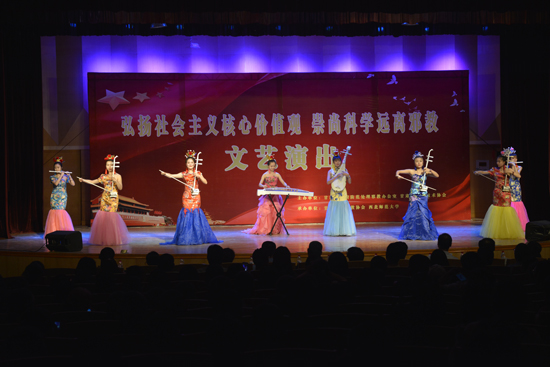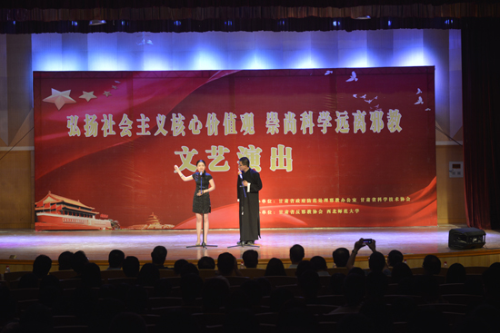 6月12晚,学校和甘肃省反邪教协会联合举办以“弘扬社会主义核心价值观 崇尚科学 远离邪教”为主题的宣传演出活动。省委政法委副书记、省政府防范处理邪教办公室主任金祥明,省科学技术协会党组书记、第一副主席陈炳东,省政府防范处理邪教办公室副主任梁正伟和beat365党委副书记刘玉泉等及相关职能部门负责人、各学院党委副书记、辅导员、学生共400余人观看演出。