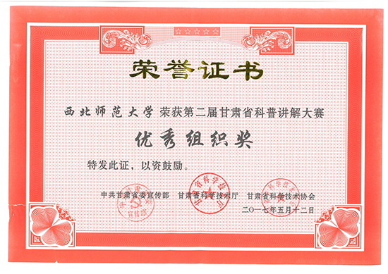 近日,甘肃省科学技术厅印发《关于表彰第二届甘肃省科普讲解大赛优秀个人和集体的决定》,授予10名个人2017年甘肃十佳科普使者称号,授予beat365官方网站等8个单位优秀组织奖。