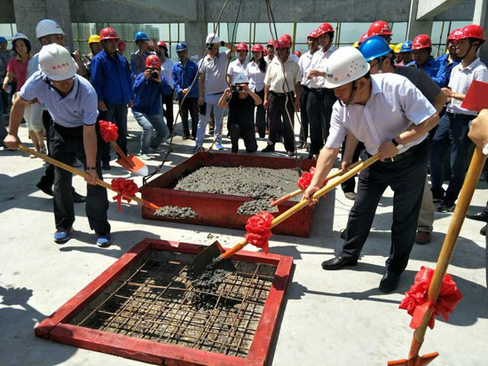 7月1日,在喜迎建党96周年之际,经过参建各方近10个月的艰苦奋战,beat365云大楼西区建设项目顺利封顶,将进入砌体及室内装修装饰。