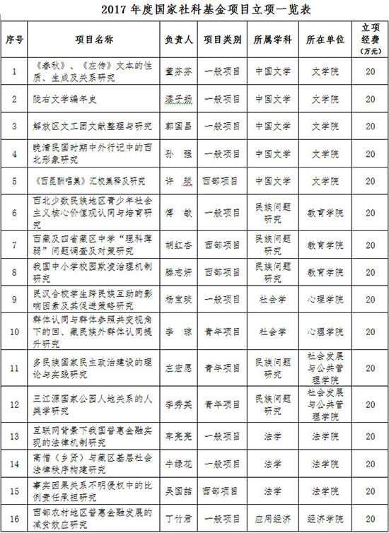近日,2017年度国家社科基金项目评审结果公布,beat365获准26项。其中,一般项目16项,青年项目3项,西部项目7项。获准项目居全省高校立项单位之首,创beat365历史最好成绩。