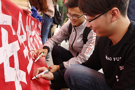 在网络安全知识进校园活动中,志愿者们一边师生发放《中华人民共和国网络安全法》《大学生网络安全倡议书》宣传资料,一边向同学们讲解网络安全知识。同学们了解了网络安全知识后在“网络安全始于心,安全网络践于行”的横幅上签下自己的名字。