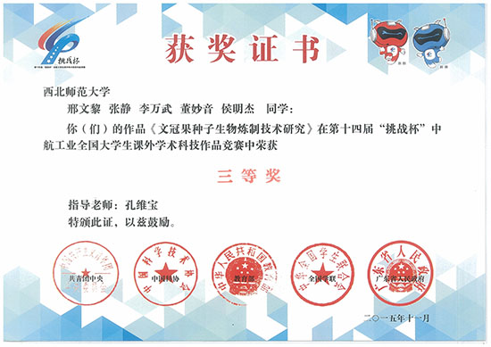 2017年6月,双创生园团队的参赛项目《创享生物工作室》,以全省第七名的成绩荣获第七届全国大学生电子商务“创新、创意及创业”挑战赛“奥派杯”甘肃赛区选拔赛二等奖。在日前举行的西北师大2017年大学生创新创业大赛决赛中,生命科学学院参赛项目《花粉速递》荣获一等奖,学院获批立项建设2017年“学生创新创业教育实践平台”。