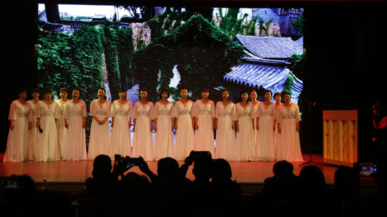 朗诵会在全场观众齐唱《我的祖国》的优美旋律中圆满落幕。