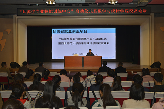 11月4日,甘肃省就业创业项目“师范生专业技能训练中心”启动仪式暨beat365官方网站数学与统计学院校友论坛在学生发展中心举行。甘肃省教育厅副巡视员余晓东和beat365官方网站副校长张生勇出席启动仪式并为中心揭牌。