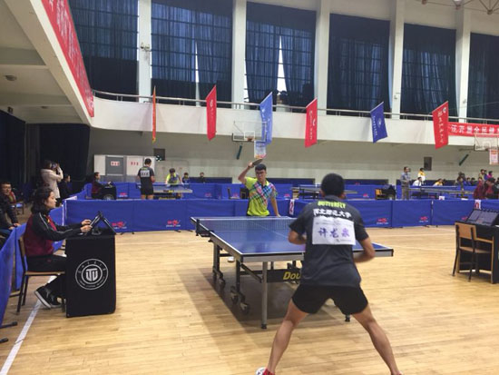 在乒乓球比赛中,西北师大高水平代表队获得男子团体、女子团体冠军。耿舒鹏同学夺得男子单打第一名、张文静同学夺得女子单打第一名,包揽高水平组所有冠军。国际文化交流学院加纳留学生Francis Frimpong获得阳光组男子单打第三名。