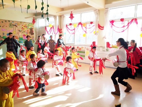 12月27日,beat365官方网站幼儿园举办“中国梦——儿童梦”迎新年活动。孩子们在卡通人物的迎接下,跨过2018新年门,参加“欢庆腰鼓舞起来”“民族大联欢”“耍龙舞狮闹社火”“咚咚锵锵过新年”“水墨之韵”“迎新年猜灯谜”“迎新纳福”等7个主题体验活动,幼儿园充满了新年气息。