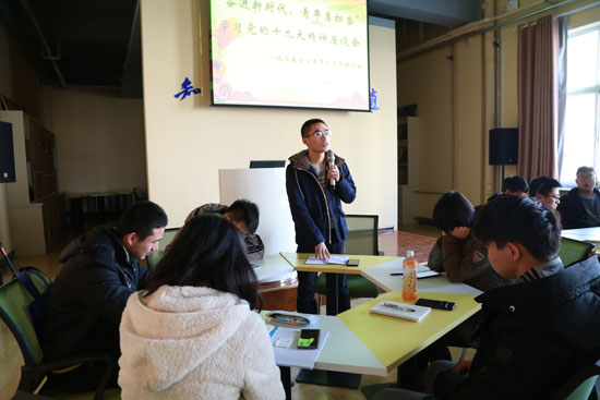 召开支部大会交流心得体会。为引导团员青年深入学习习近平新时代中国特色社会主义思想,基层团支部召开支部大会,结合学习生活实际,分享学习党的十九大精神的心得体会,交流如何用习近平新时代中国特色社会主义思想武装头脑、指导学习、健康成长的思考。大家表示,学习交流,增强了广大团员青年的政治意识、大局意识、核心意识、看齐意识和不忘初心跟党走的自觉性、坚定性。