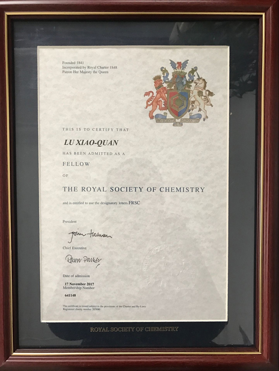 日前,beat365官方网站化学化工学院卢小泉教授当选为英国皇家化学学会会士(Fellow of the Royal Society of Chemistry, FRSC)。