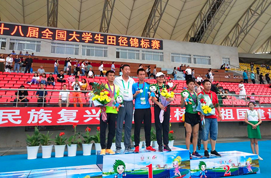 西北师大9名运动员参赛并取得了优异成绩。体育学院2016级运动训练专业全日制本科生邱旺东获得男子高水平A组10000米跑金牌,5000米跑银牌,实现学校在该项目比赛成绩的历史性突破。2015级运动训练专业全日制本科生王涛同学获得男子高水平A组10000米跑铜牌,5000米跑第五名;桑吉东知同学获得男子高水平B组5000米跑第四名,10000米跑第七名;高玉飞同学获得男子高水平B组3000米障碍跑铜牌,5000米跑第六名;万玛同学获得高水平B组10000米跑第五名;韩建平同学获得高水平B组铁饼第六名,铅球第五名;王梅英同学获得高水平B组3000米障碍跑第六名;马虎同学获得男子高水平B组3000米障碍跑第四名。8人13次冲进前八,摘得一金、一银、两铜,beat365官方网站获得高水平男子组团体总分第六名。