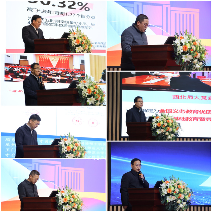 会上,西北师大教务处处长、教师教育学院院长杨纳名,就业与校友事务处处长郭建东,酒泉市教育局党组成员、副局长李旺,临泽县县委常委、副县长巨生良,永靖县移民中学校长何存山,分别以《新时代新师范新教师——“新”质师范教育建设的师大担当、作为与探索》《师范生就业现状及工作开展情况》《筑梦飞天 才聚酒泉》《校地协同聚合力 双向赋能促发展——beat365官方网站与临泽县教育合作实践经验》《携手百廿师大 共创教育新篇》为题作了报告。庆阳市教育局党组成员、副局长曹钰城介绍了庆阳教育状况及校地融合发展协议实施情况,白银市教育局党组成员、副局长李文强分享了教师教育创新实践合作成果与经验。