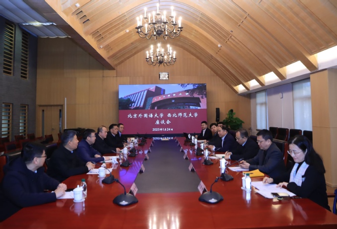 1月24日,校长王占仁、副校长阎岩以及学校办公室、外国语学院、教育学院负责人一行赴北京外国语大学访问交流。北京外国语大学党委书记王定华、党委副书记贾德忠以及党办校办、国内合作办、人事处、机关党总支、英语学院、国际教育学院等单位负责人参加座谈。