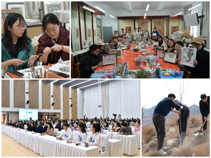 在实践教育活动中,地理与环境科学学院、美术学院带来了生态文明科普宣传展示,150余名师生代表通过“习近平生态文明思想的甘肃实践”思政微宣讲、生态景观模型绘图科普展示、散落树枝“自然艺术品”制作体验和“同植青绿 共树未来”义务植树等活动,通过故事化、创新化、体验化的手法,全面提升生态文明意识。