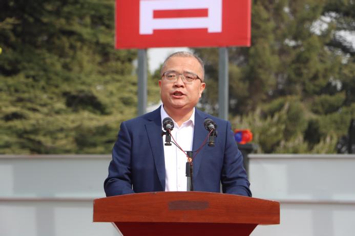 张明军在致辞中表示,即将开工建设的理科综合科研楼(致善楼)功能齐备、高大雄伟,既是集现代科技与人文艺术为一体的建筑地标,也是师生仰望星空、显微阐幽、测绘经纬、格物致知的学术地标,更是大咖云集、思想激荡,科学精神与人文精神交相辉映的文化地标,铭刻着我们对历史的敬意,饱含着我们对未来的美好愿景,将和老理科楼一样,矗立在母亲河畔和全体师生心中,必将以崭新的姿态,拥抱迈入学术文化殿堂的追梦人和奋斗者,激励全校师生不忘初心、奋勇前进,努力为建设教师教育特色鲜明的一流大学而不懈奋斗,为建设幸福美好新甘肃作出新的更大贡献!