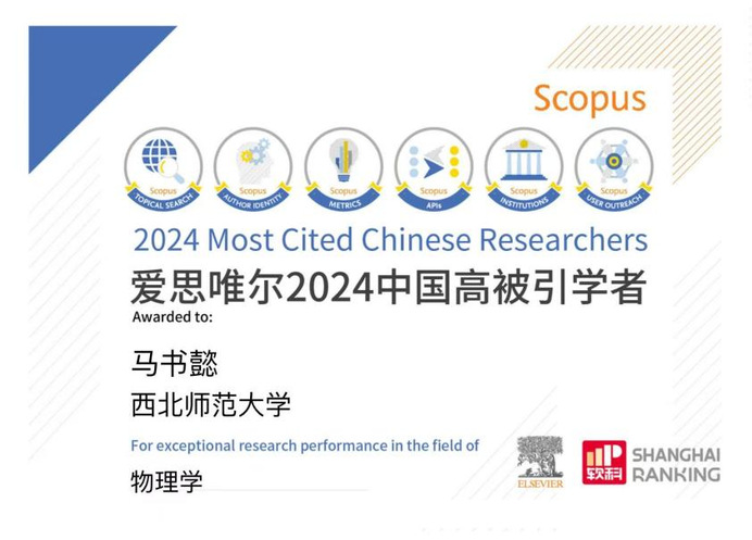 西北师大三位教授入选爱思唯尔2024“中国高被引学者”榜单