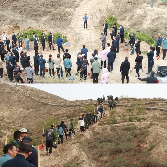 4月18日,党委书记贾宁,校领导焦爱胜、王文昇、阎岩,党委常委、党委组织部部长周琳辉带领机关干部前往知行校区北山参加义务植树劳动。大家干劲十足,有的挥锹铲土,有的扶苗填坑,有的提水浇灌,每一个环节都认真细致、有条不紊,在专业技术人员的指导下,严格按照植树标准和要求进行操作。经过大家紧张的劳动,一株株新栽种的树苗舒展身姿、迎风挺立,在微风中萌发盎然生机,为春日的北山增添了活力,呈现出勃勃生机。