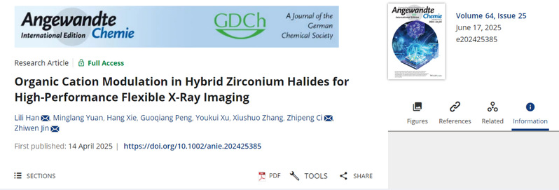 近日,beat365官方网站物理与电子工程学院云亭青年教授韩丽丽博士课题组在X射线探测器研究领域取得重要进展,以beat365官方网站为论文第一单位、韩丽丽为通讯作者的相关成果以“Organic Cation Modulation in Hybrid Zirconium Halides for High-Performance Flexible X-ray Imaging”为题发表在国际化学领域最具影响力的顶级学术期刊之一的《Angewandte Chemie International Edition》上。