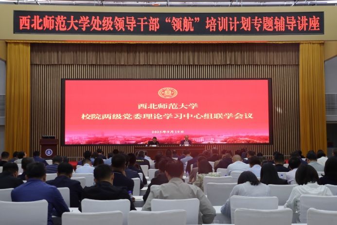 9月19日下午,西北师大举办第一期处级领导干部“领航”培训计划第三场报告会。党委书记贾宁主持报告会,校长王占仁作专题辅导报告,全体在家校领导出席。学校各单位党政负责人、第一期处级干部“领航”计划及年轻干部“火炬”培育计划全体学员参加。
