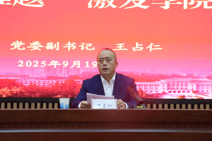 会上,王占仁以问题导向切入,结合国家重大战略,以“破解发展难题,激发学院活力”为题,重点围绕“聚焦教学改革,落实两个文件”“聚焦有组织科研,赋能高质量发展”“聚焦拔尖造峰,扩大学科影响”“聚焦人才资源,激活发展动能”“聚焦依法行政,提升治理效能”五个方面,深入剖析了学院工作中的瓶颈问题,阐述了推动学校高质量发展“干什么”“怎么干”的关键路径。他希望通过此次培训交流,各学院要明思路、学方法、提质效,在完善内部治理、激发内生动力、促进交叉融合等方面创造更多可复制、可推广的经验,把学习成效转化为推动事业发展的强大动能,不断提升治理能力和治理水平,为学校高质量发展夯基筑本,贡献更多前进的力量。