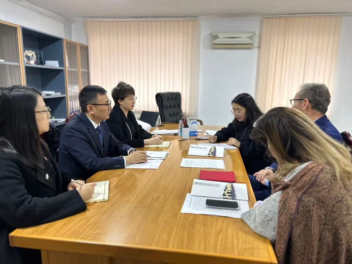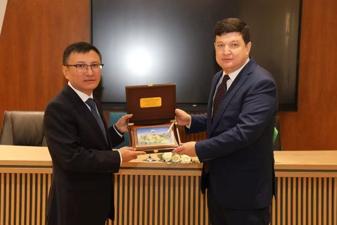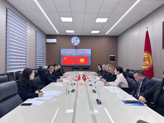 在吉尔吉斯斯坦,马利邦一行访问了吉尔吉斯斯坦科学、高等教育与创新部,分别与第一副部长阿伊别克·乔托诺夫,主管高等教育、创新副部长努尔兰·奥穆罗夫开展交流座谈,双方就开展人工智能培训等项目交流了意见。期间,代表团一行访问吉尔吉斯国立民族大学,商讨中文教学合作事宜。